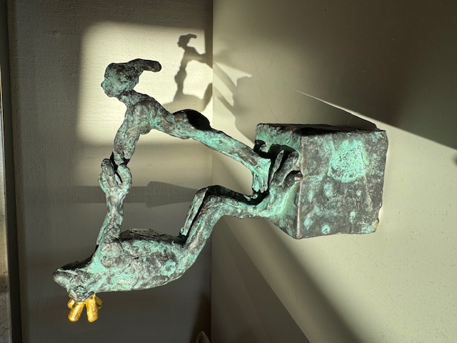 Bronze og guld, 18 cm høj og 14 cm bred