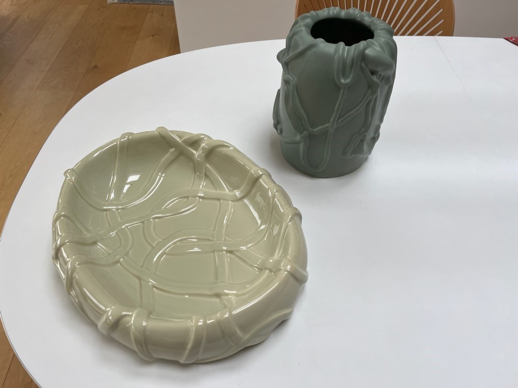 Michael Kvium Keramik fad og vase Fad 40 x 32 x 4. Vase 25 x17